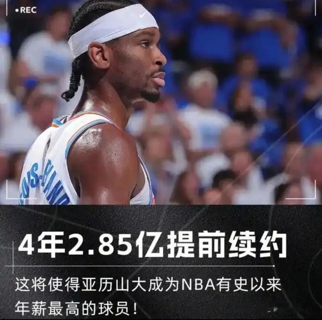 先来看看雷霆,今年的续约情况,亚历山大雷霆签订的是一份4年2.85亿美元的合同,年薪超过7000万美元,但是这份合同,要从27-28赛季才开始,未来2年,不受影响。